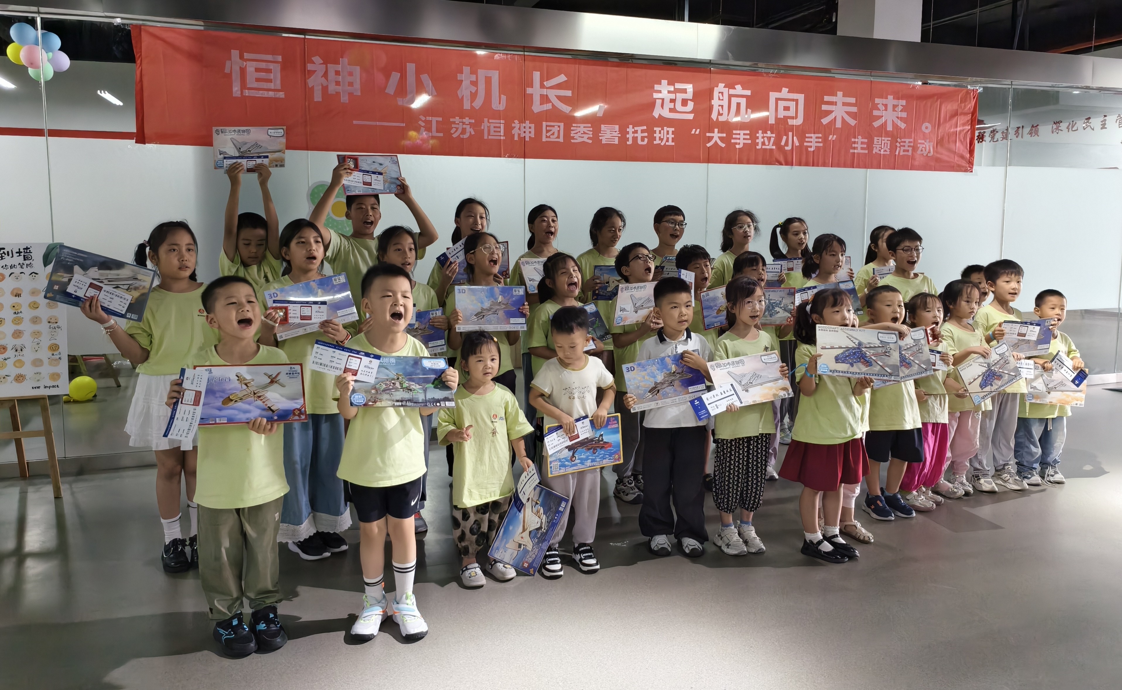 8月12日下午,恒神股份愛心暑托班的活動場地變身歡樂航空港,約50名職工子女化身 “恒神小機長”,在團委青年們的帶領和陪伴下,開啟了一場充滿歡笑與成長的航空主題奇妙之旅。這場以 “恒神小機長?起航向未來” 為主題的趣味游戲活動,讓孩子們在輕松愉快的游戲中收獲了知識、初步建立了團隊互助協作的觀念。開場破冰:舞蹈牽情誼,小隊齊集結隨著歡快的音樂旋律響起,活動正式拉開帷幕。5名團委青年與孩子們手拉手圍成圈,跟著節奏蹦跳旋轉,原本有些靦腆的小朋友們很快被活潑的氛圍感染,大廳里瞬間充滿了銀鈴般的笑聲。這場破冰舞蹈就像一根無形的線,迅速拉近了青年志愿者與孩子們的距離。在簡要的自我介紹后,大家通過抽取彩色手環,分成了紅、黃、藍、綠、白五支小隊,展開了一場場趣味比拼。趣味闖關:航空主題游戲里的知識與協作折紙飛機環節迅速點燃了孩子們的激情。大家拿著 A4 紙,跟著領隊老師學習折疊技巧,有的還別出心裁地畫上笑臉和花紋。“三、二、一,起飛!” 當數十架紙飛機穿過 “書架圓環” 時,大廳里爆發出陣陣歡呼?!拔沂瞧磮D小能手” 環節堪稱對 “速度與協作” 的考驗。當飛機拼圖被分發到各隊時,孩子們立刻圍坐在一起,七手八腳地開始拼接。“這塊應該在這里!”“不對,看機翼的形狀!” 團委志愿者們在旁耐心引導,既不包辦代替,又及時給迷茫的小隊員們支招。最終,各支隊伍都順利完成了拼圖任務?!帮w機連連看” 游戲成了記憶力大比拼。孩子們盯著倒扣的紙牌,時而蹙眉思考,時而拍手歡呼,團委志愿者們則在一旁計時鼓勁、還要熱心的小朋友不時用掌聲鼓勵加油。最終,所有孩子都贏得了木制飛機模型拼圖,獲勝隊伍的小朋友還優先挑選了心儀的款式。溫情收尾:徽章與機票見證成長,愛與理念扎根心間活動尾聲,每位小飛行員都領到了閃亮的 “恒神小機長” 徽章,驕傲地別在胸前。當印有每個孩子名字的 “結業機票” 被鄭重頒發時,不少小朋友舉著機票和模型向志愿者們開心地道謝。本次活動旨在讓職工子女在歡樂中感受航空精神,同時通過青年志愿者的陪伴,傳遞企業對員工家庭的關懷。這場持續兩小時的活動,像一根堅韌的 “情感碳纖維”,將企業、家庭與孩子緊緊相連。恒神團委的青年們用熱情與愛心,為孩子們的暑假添上了一抹明亮的色彩,也讓 “愛與未來一起飛” 的溫暖理念,深深扎根在每個人心中。